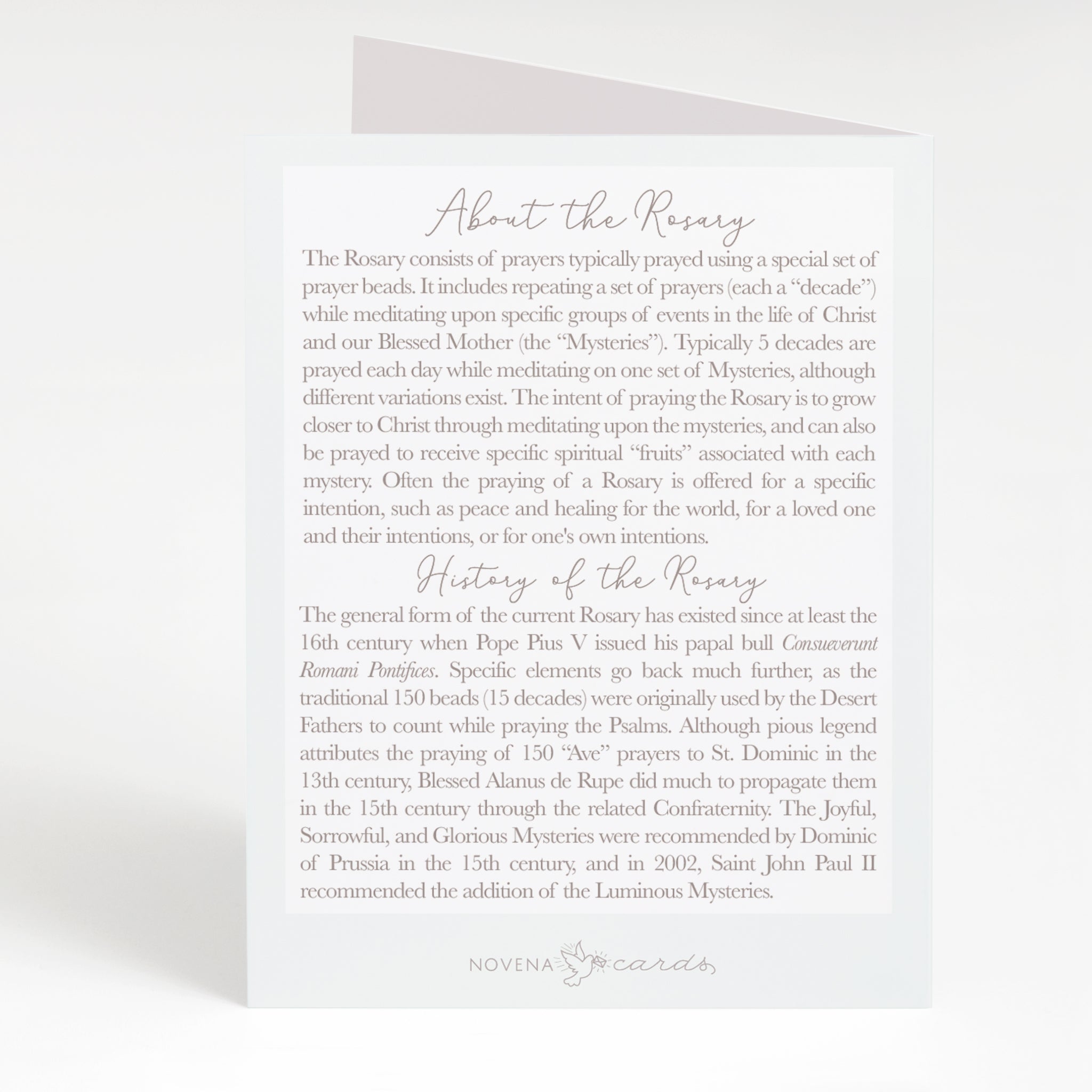 - Inside right of card: space for writing your name and the date you prayed the Rosary