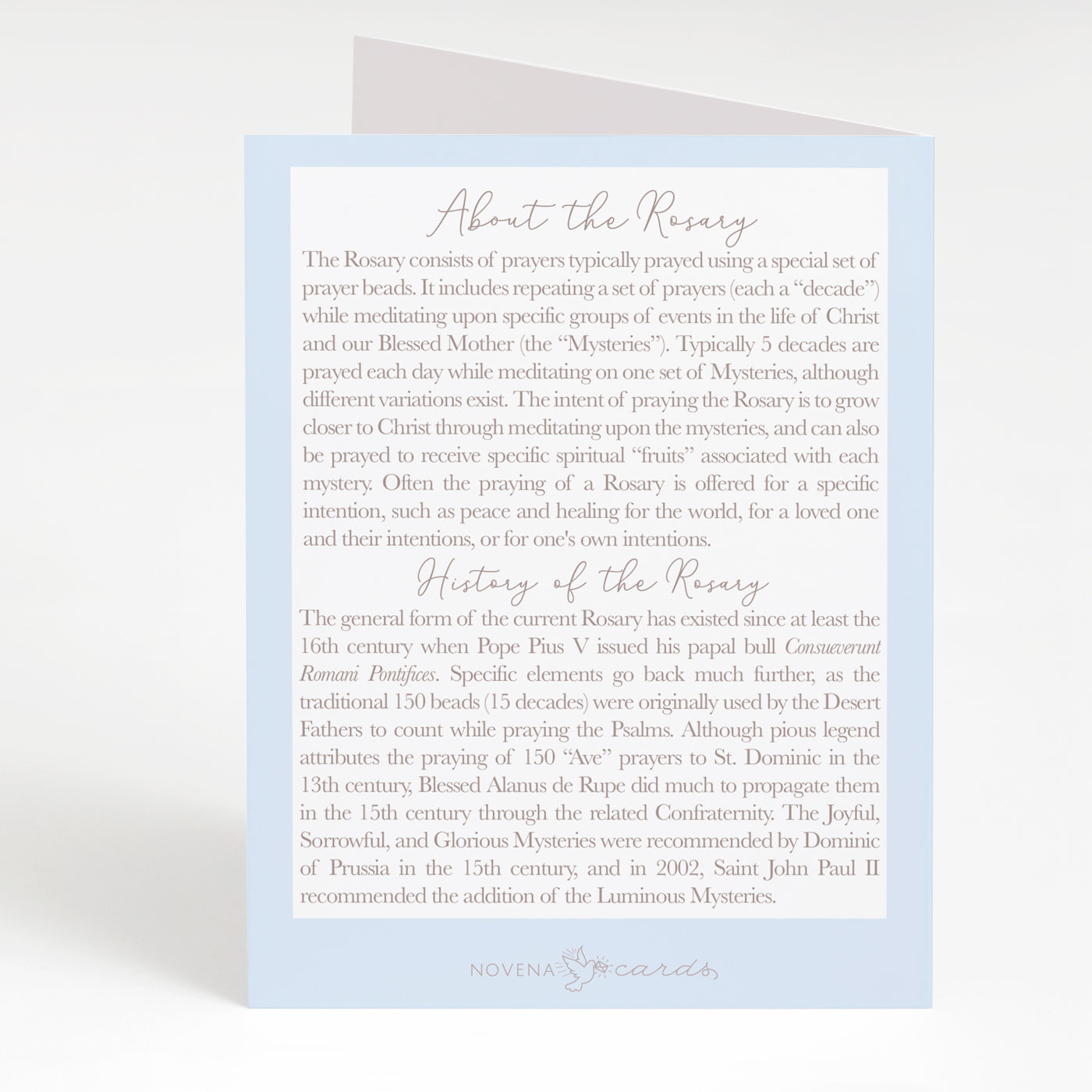 • Back of card: information about the Rosary, including its history